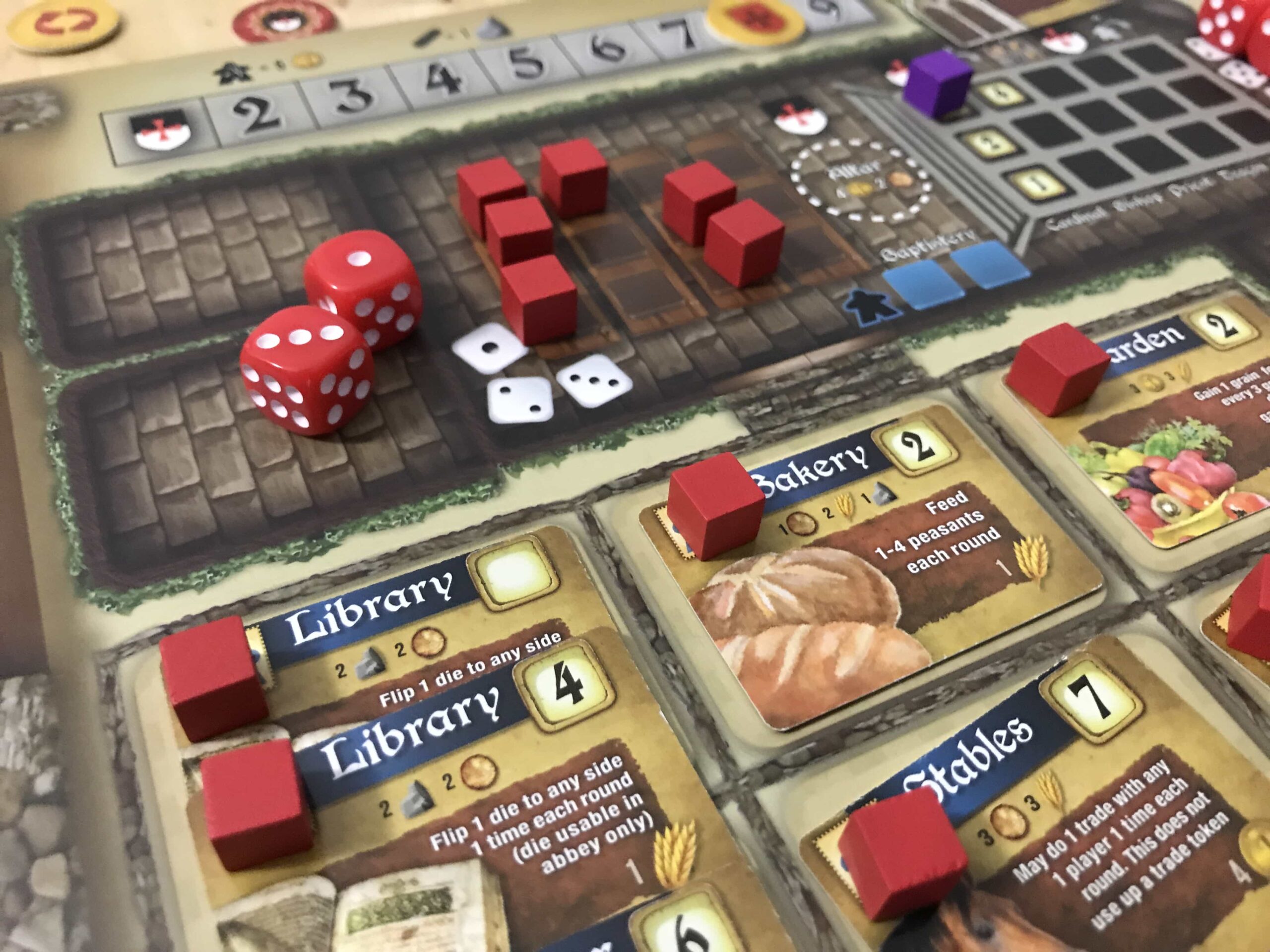 You have to be carefully engaged with every aspect of the game, watching majorities, tracking the probability that your workers are pulled from the bag, and at times, taking calculated risks to put out higher value buildings and complete blocks that will reward you with influence and later with cards.