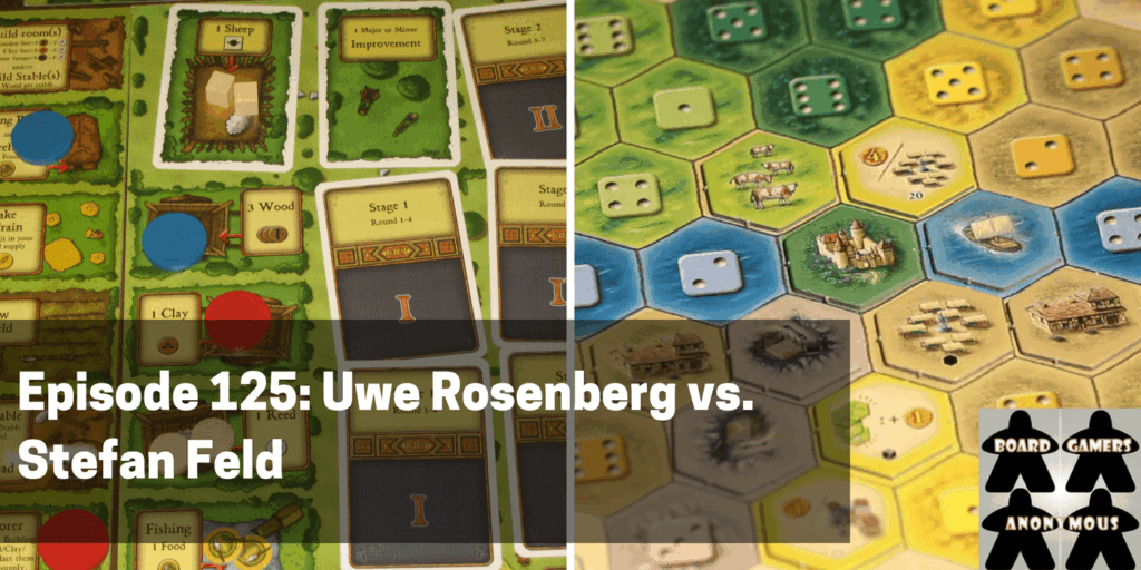 This week, Anthony and Chris dig into euro-mega-designers Uwe Rosenberg and Stefan Feld to determine once and for all, who does it better. In this special designer edition of our VS. feature, we’ll look at the games of both designer, as well as their impact on gaming and overall fun-factor for us to determine which comes out ahead. We also ask the listeners in our question of the week who they’d pick if they could only have one library of games.