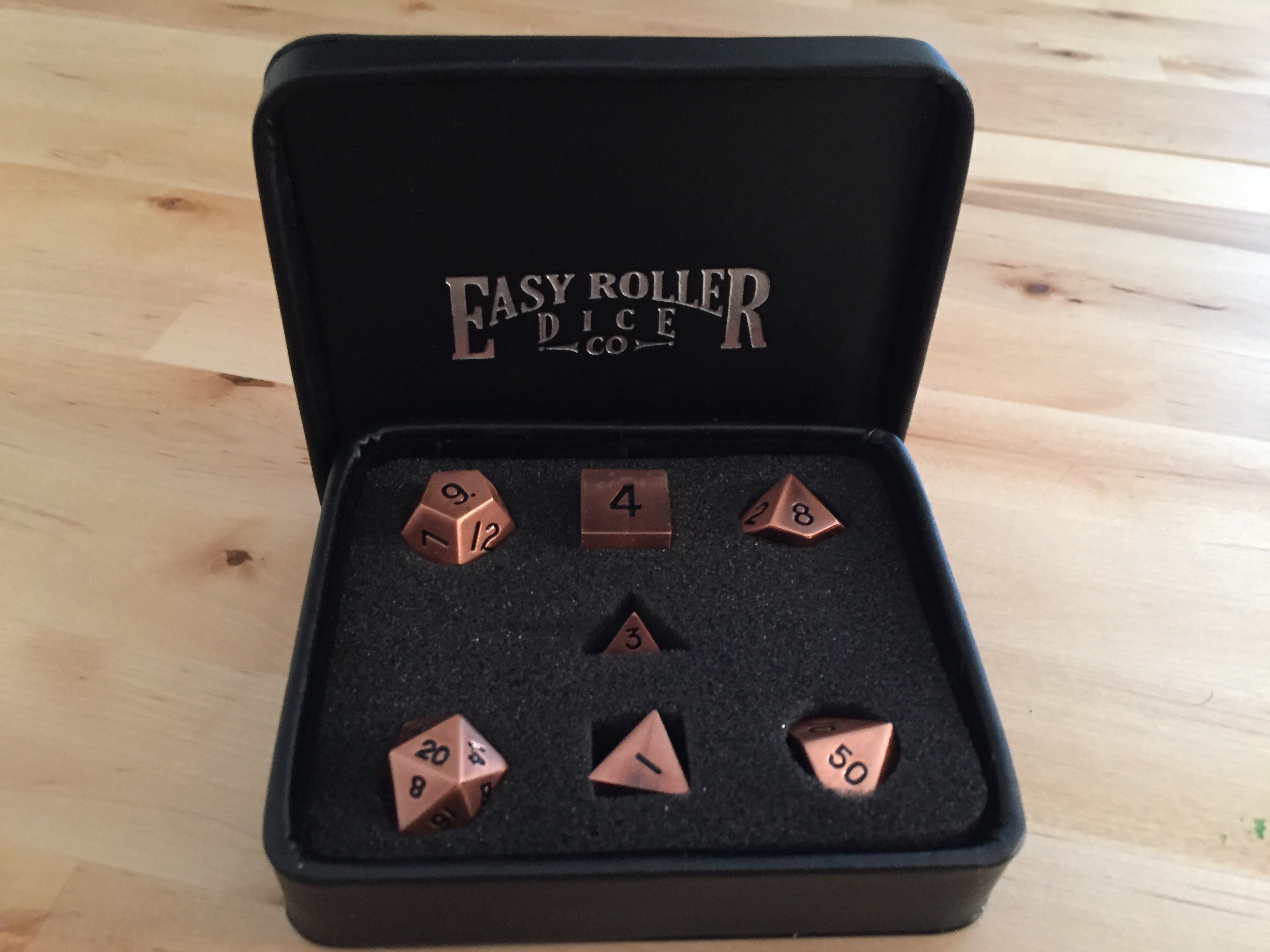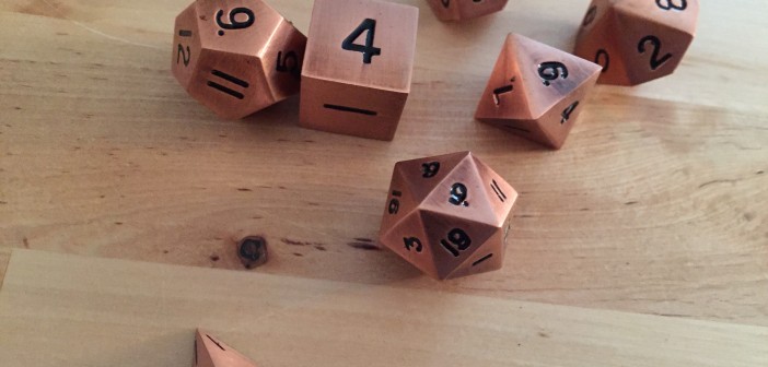 Until a shiny new set of metal polyhedral dice from Easy Roller Dice Co. arrived a few weeks back, I didn’t think much about the dice I used. Sure, I have my lucky set, and there are certain patterns I like more than others, but in the end, unless a D20 had become possessed and seemed intent to kill my character as quickly and mercilessly as possible, I didn’t think much about the dice I used.