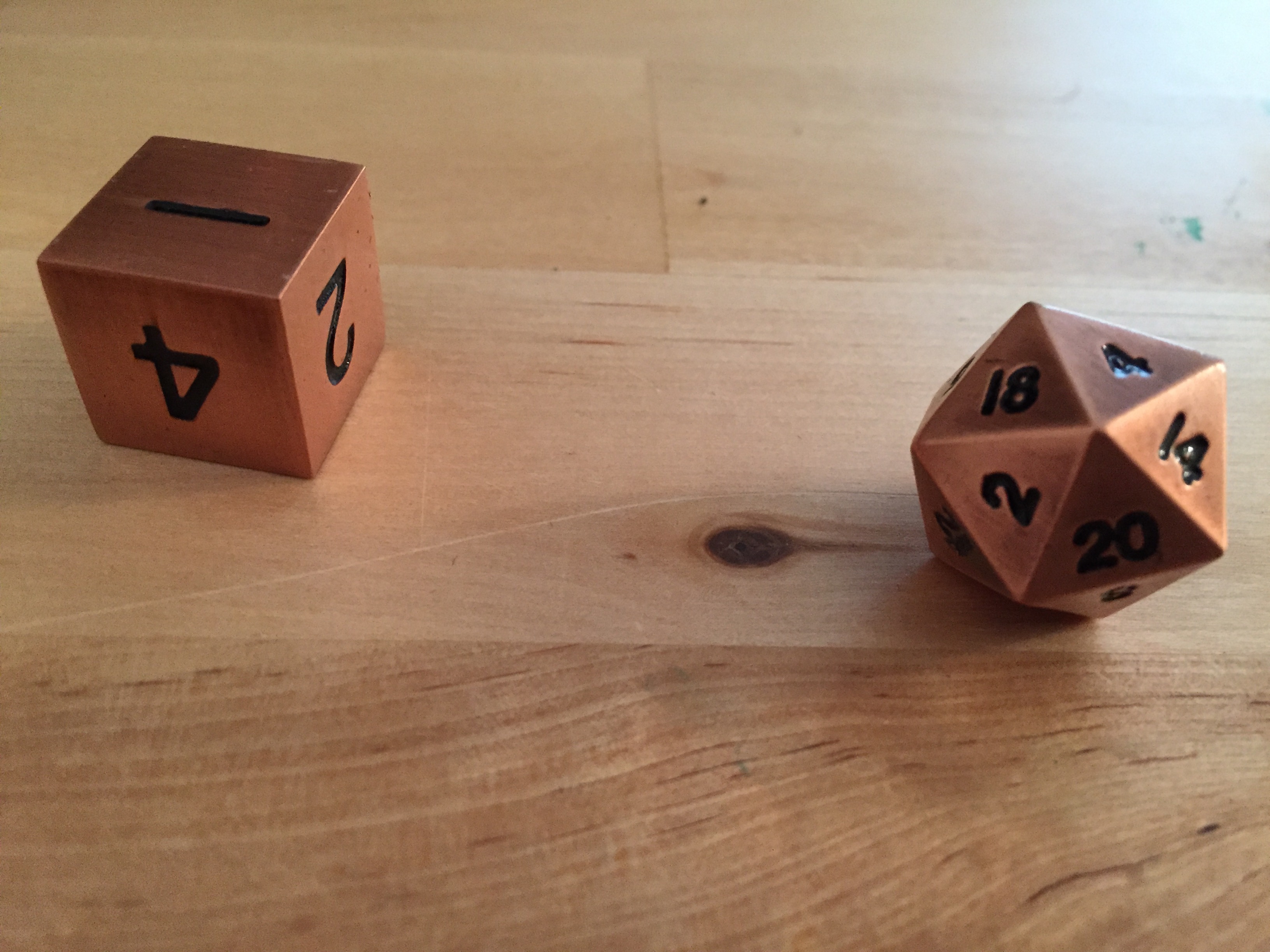 That said, they still feel and roll well balanced if rolled hard enough and there are plenty of ways to get around the excess weight. You can shake them up a bit extra in your hand or you can use a dice tower to handle the randomization, and they just feel so solid. For a dramatic, major roll at the climax of a long session, nothing is better than a copper or gun metal D20 rolling across the table, making more sound than the thunder of the gods.
