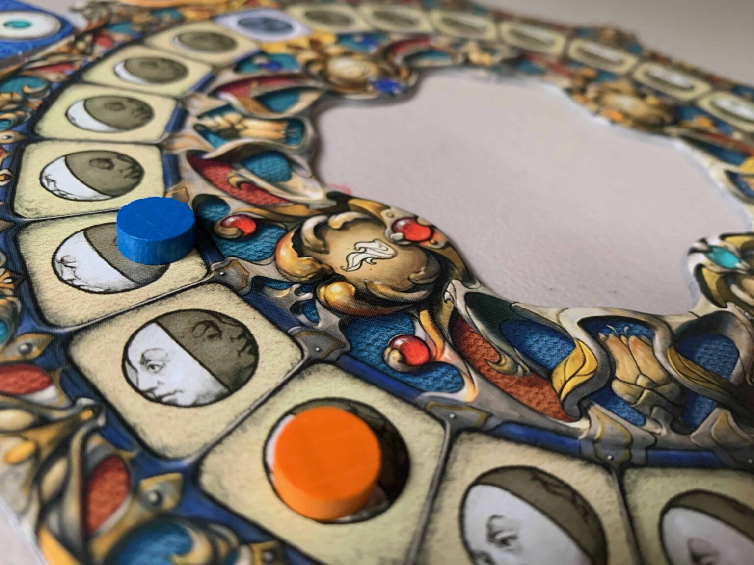 What is perhaps most astounding about Nova Luna, though, is that it does away with the victory point baseline that most Rosenberg games use. Instead, it is a race game – a clever spin on the “get rid of your discs” first mechanic.